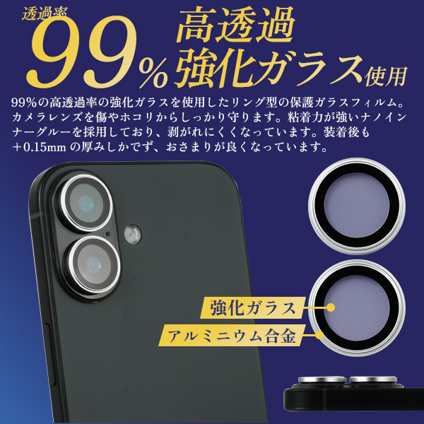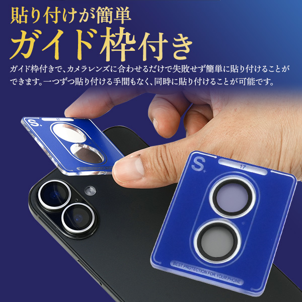 iPhone 17用 ガイド枠付きリング型カメラレンズ保護ガラスフィルム |