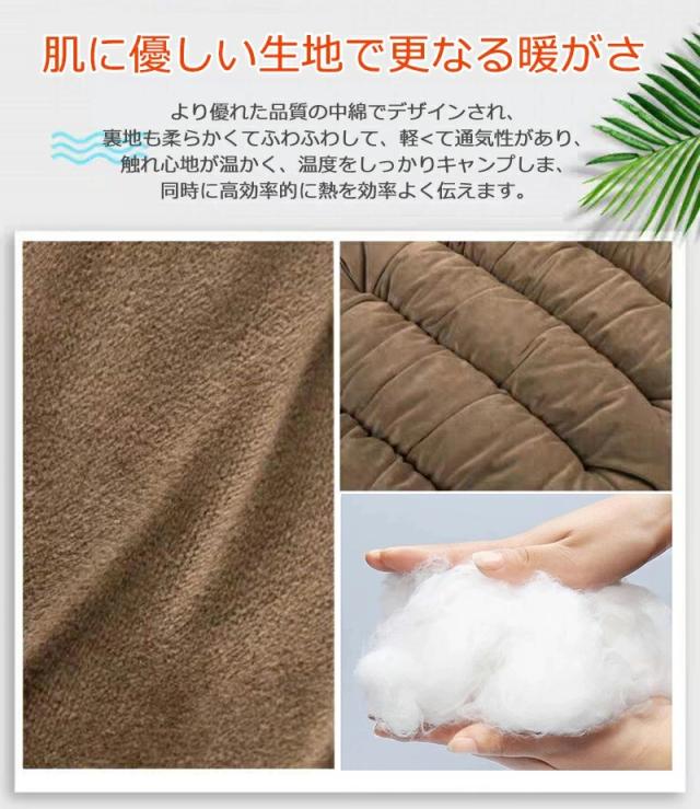 【5秒速暖】ボタンを3秒間押し続けると、加熱が開始され、すぐに熱を感じることができます。これは注目の温熱素材「複合繊維加熱層」内蔵-----熱伝導性に優れている複合繊維を採用しており、遠赤外線の熱エネルギーは5秒で広範囲を均一に加温、急速に暖かくなる。