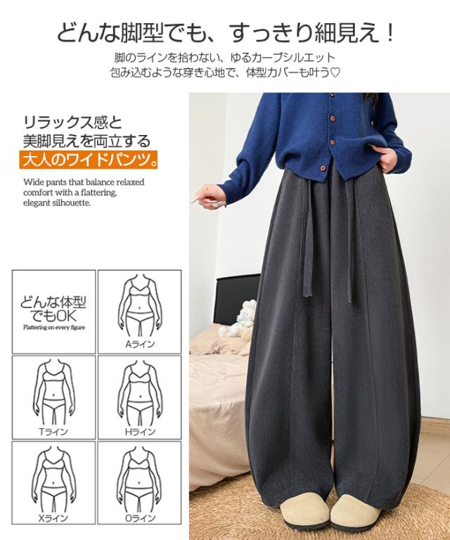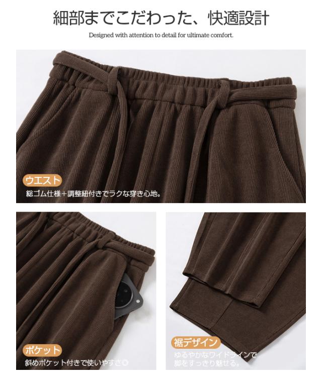 20%OFFクーポン!パンツ コーデュロイ カーブパンツ レディース 裏起毛 選べるタイプ ワイドパンツ 美脚 体型カバー あったか素材 ボトムス 低身長 高身長対応 選べる丈 秋冬 ゆったり 大人 【 選べる丈コーデュロイカーブパンツ】 ダークエンジェル a_bag