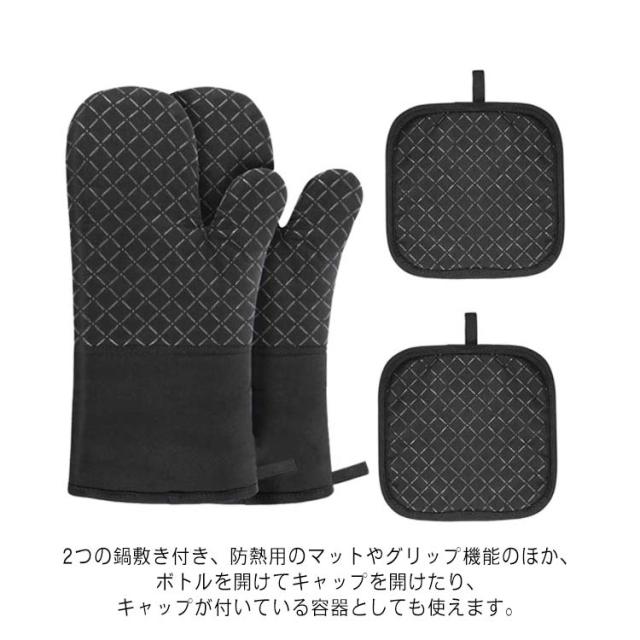 耐熱ミトン 鍋つかみ オーブンミトン 耐熱グローブ 300℃耐熱 耐高温 断熱 滑り止め 厚手 柔軟 男女兼用 断熱 電子レンジ 調理用 キッチン用 4セット