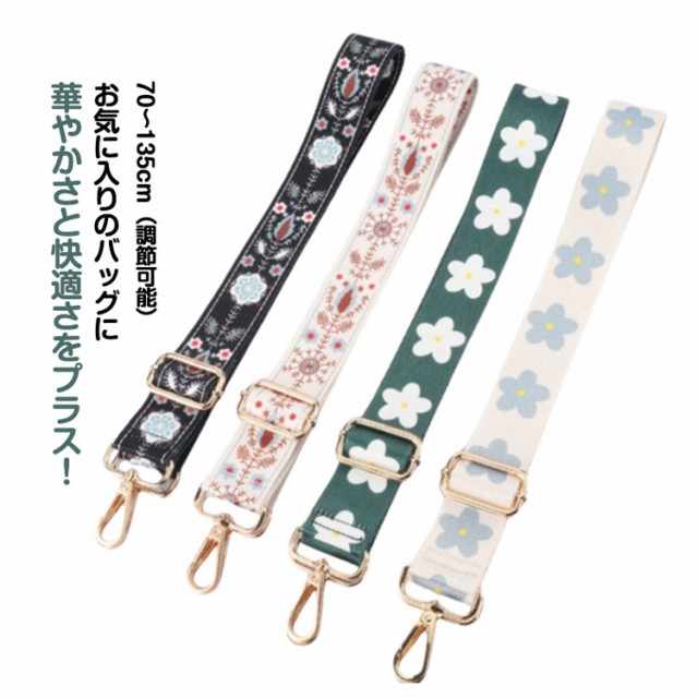 ショルダーストラップ 太め バッグ用 単品 付け替え ショルダーベルト バッグストラップ カバン用 幅広 花柄 交換用 肩紐調節可能 斜めがけ 肩掛け おしゃれ かわいい 金具 シルバー ゴールド ブラック