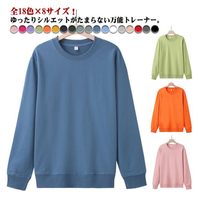 ゆったり 綿 韓国 薄手 レディース おしゃれ 全18色×8サイズ!トレーナー パーカー 2XL 秋 長袖 ラウンドネック 無地 かわいい 大人 部屋着 春 シンプル 冬 大きいサイズ S M L XL 全18色×8サイズ!トレーナー 3XL スウェット