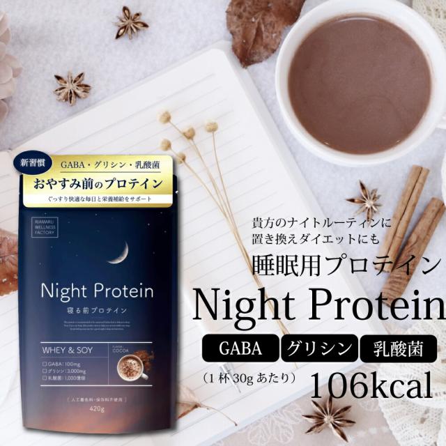 睡眠用プロテイン Night Protein(ナイトプロテイン)ココア風味 420g 夜間美容 GABA グリシン 乳酸菌 ホエイプロテイン ソイ 睡眠 リカバリー 女性 置き換え ファスティング ダイエット 1回30g 約14日分