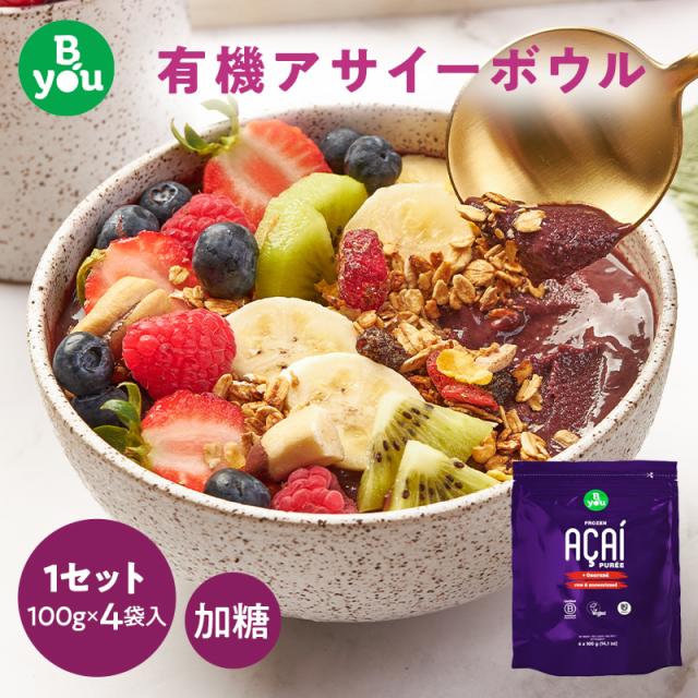 アサイー 加糖 400g(100g×4個) ブラジル直輸入 ピューレ オーガニック 有機JAS認証 USDA・VEGAN・KOSHER・B Corp認証 無添加