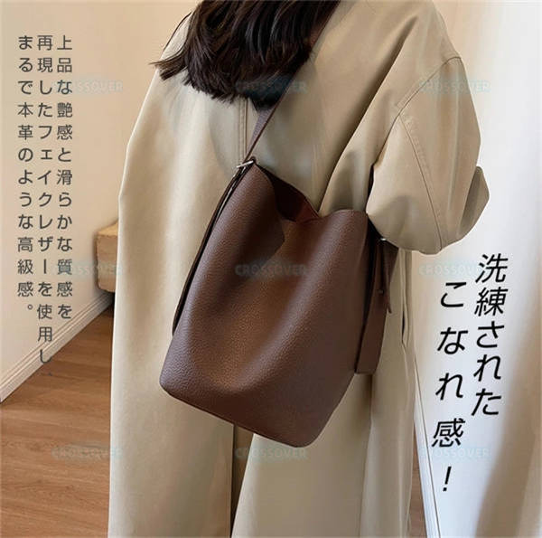 本革風バケツ型 バケツバッグ レディース トートバッグ ショルダーバッグ 韓国風 バッグ 無地 バッグ 2WAY バッグ コインケース付き モード系 バッグ 大容量 通学 通勤バッグ