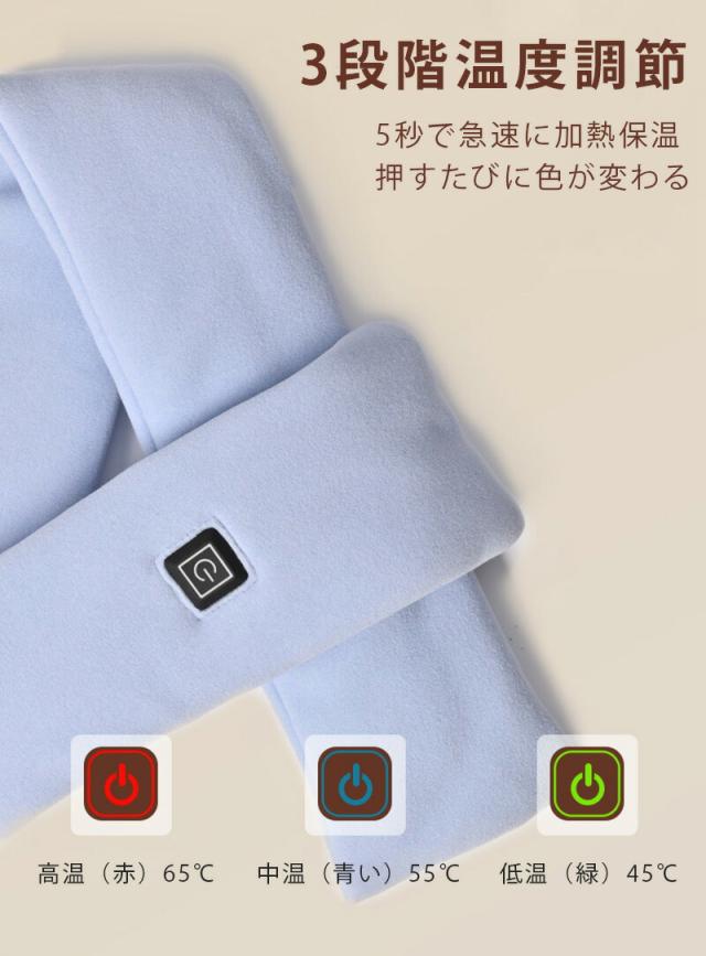 商品:ヒーターマフラー 電熱マフラー 防寒 保暖 洗える 加熱ネックウォーマー 3段階温度調節 USB充電式加熱スカーフ ホットマフラー 電気マフラー スキー 通勤 通学 贈り物 プレゼント 男女兼用