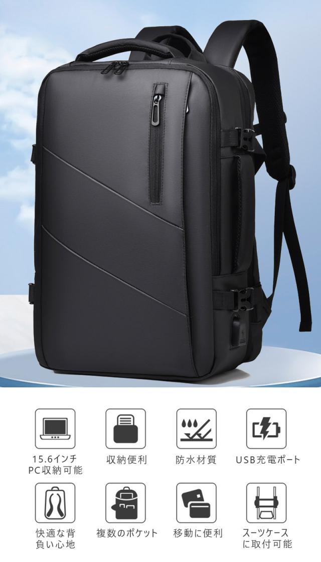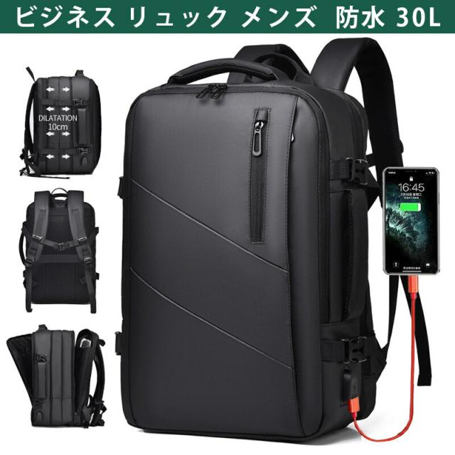 ビジネス リュック メンズ 大容量 拡張 防水 バックパック リュックサック 30L 15.6インチ PC ビジネスリュック USB充電ポート 耐衝撃 防汚性 通気性 バックパック リュック 人気 おしゃれ 高校生 通学 通勤 修学 出張 旅行 男女兼用