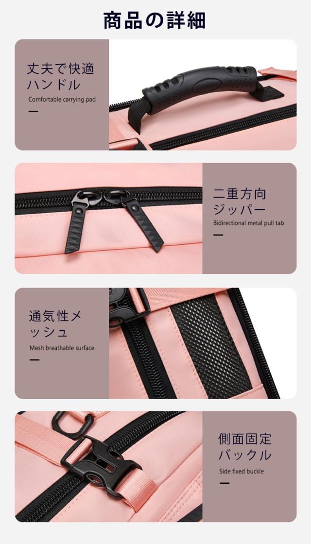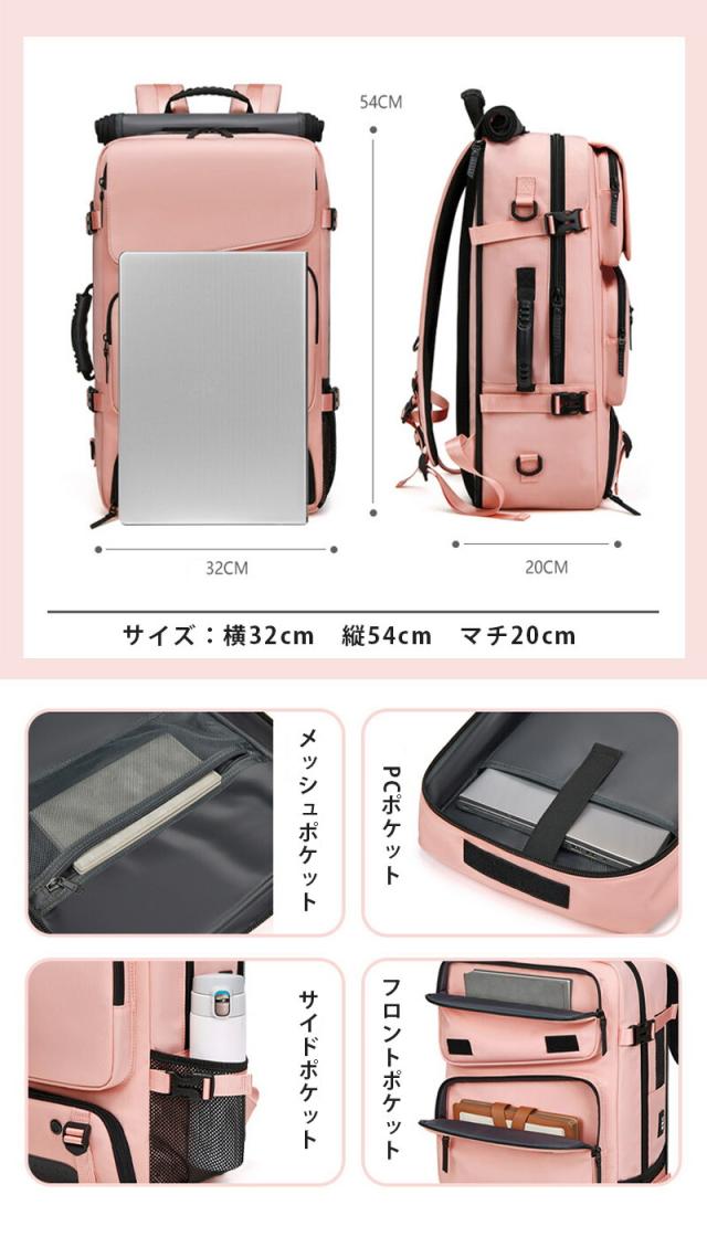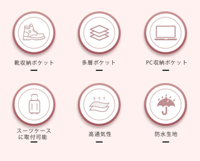 大容量で、収納ポケットもたくさんあり、使い勝手も抜群です。17インチのPCに対応可能な大容量により、傘、A4サイズの書類や3-5日分の着替えなどをたっぷり収納できて便利です。