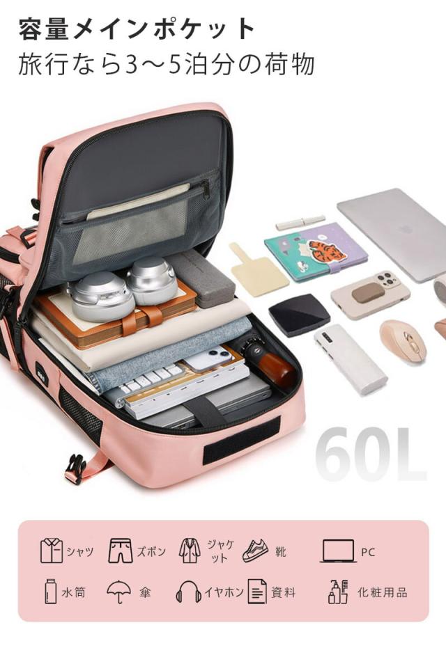 リュック 大容量 60L リュックサック メンズ ビジネスリュック リュック バックパック ラップトップバック 通勤バッグ 大容量 防水 PC17インチ 靴収納 USB充電ポート付き ビジネス 登山 アウトドア 旅行 災グッズ 災害対策 地震 旅行バッグ 男女兼用