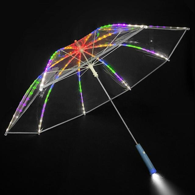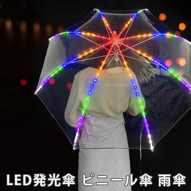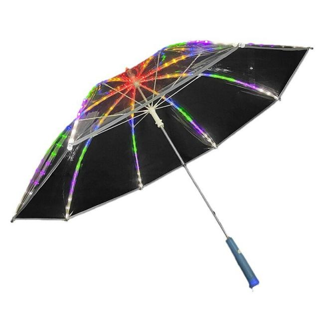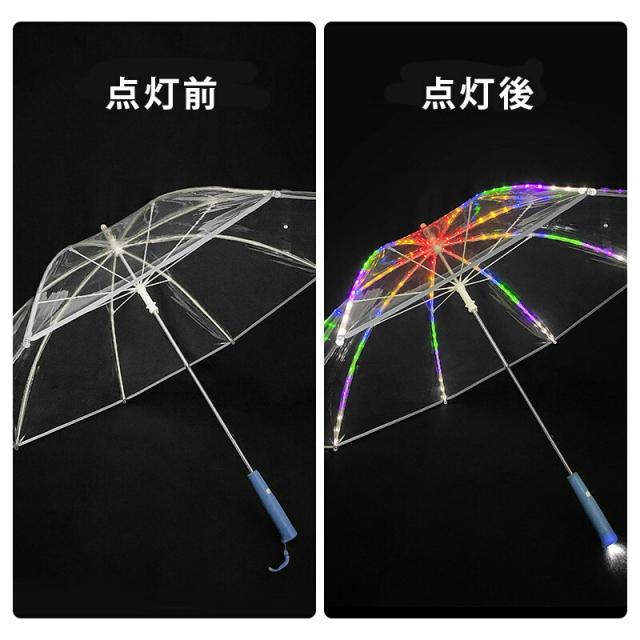 光る傘 長傘 透明傘 LEDライト付き 電池式 傘 ビニール傘 雨傘 お子様 男女兼用 ぴかぴかさ フラッシュライト 6色に光る 通勤 通学 LED傘 夜道も安心 防災 照明