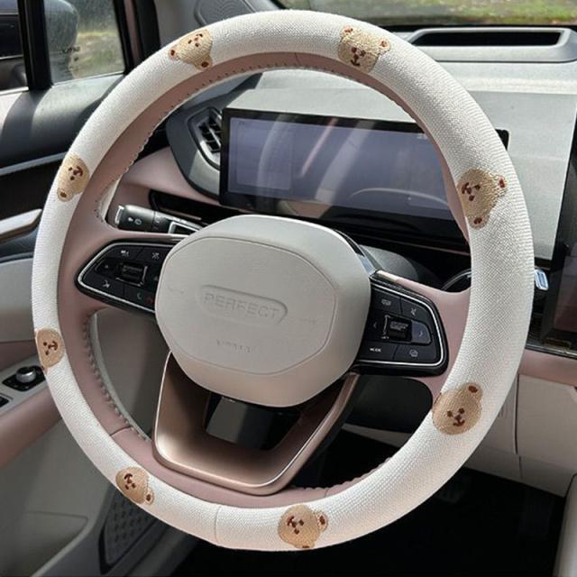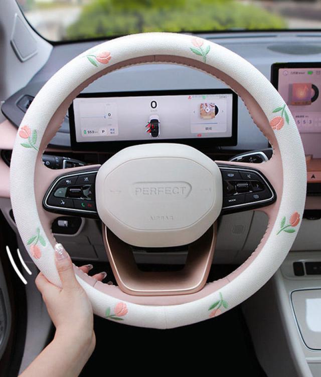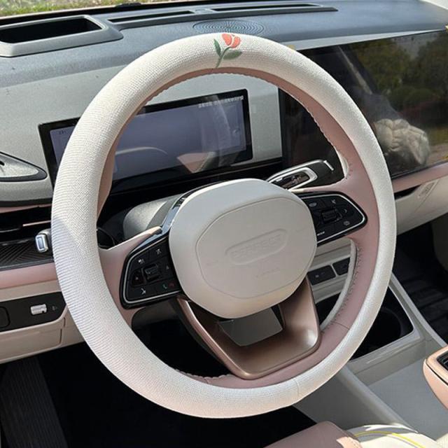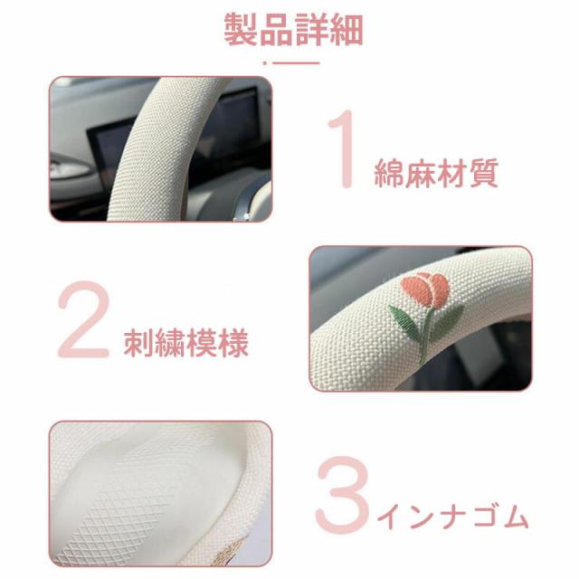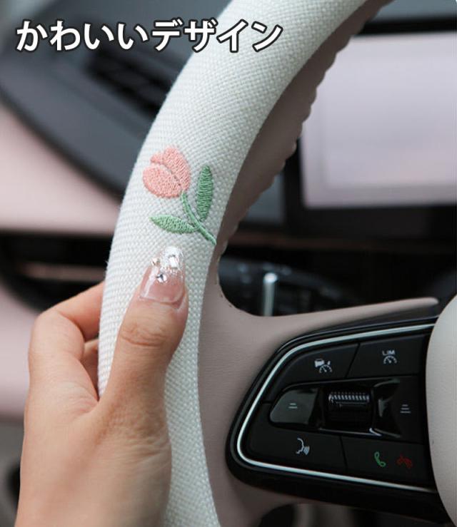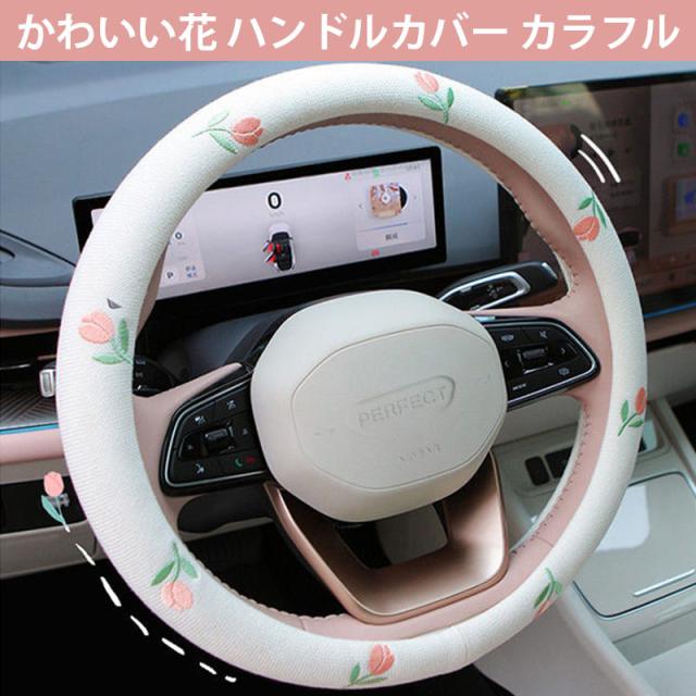 かわいい花 ハンドルカバー 綿麻 かわいい 軽自動車 普通車 多車種適応 車内装 O型 D型 38cm 握り感 汎用 車 車ハンドルカバー 滑り止め 通気性よし 汚れ防止 オールシーズン対応 ハンドル 保護カバー 内装パーツ アクセサリー 取付簡単 送料無料