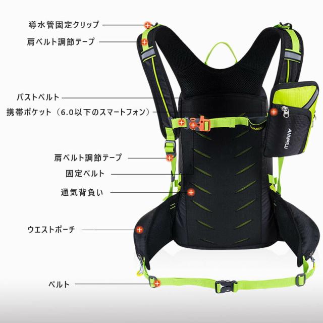 柔らかくて快適な自転車バッグパックは、圧迫することなく体をすっかりフィットします。メインポケットは18L収納可。それ以外、サイドネットポケットも付けています。大容量で、シーンや荷物の量によって使い分けが可能で、バッグ内の整理整頓がしやすいです。