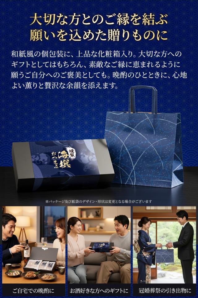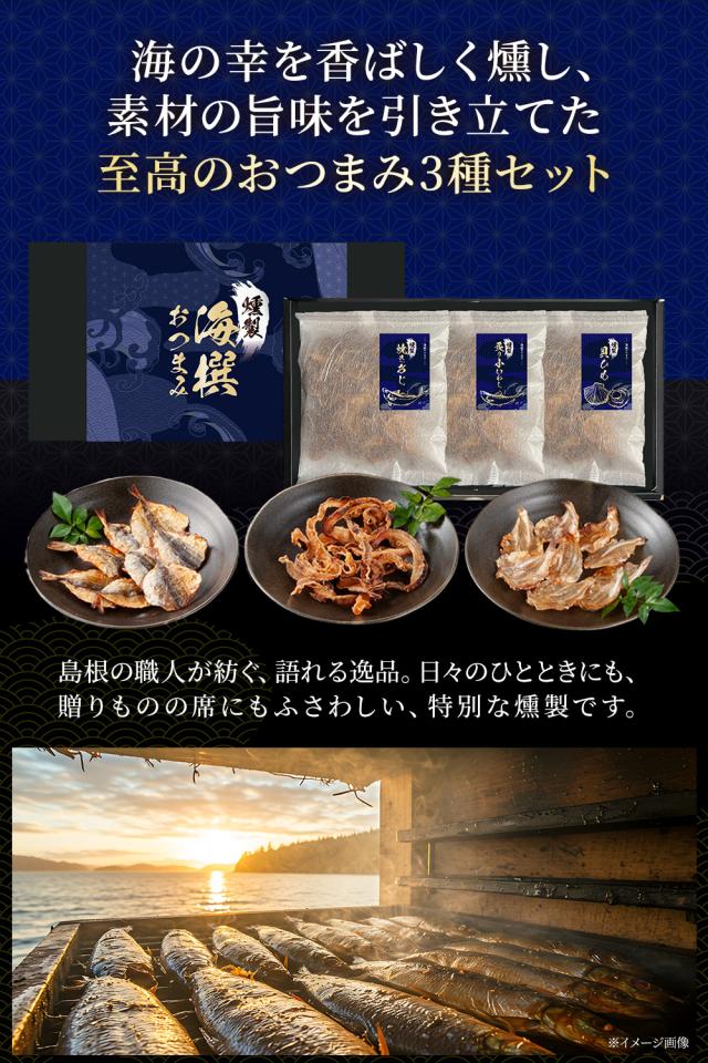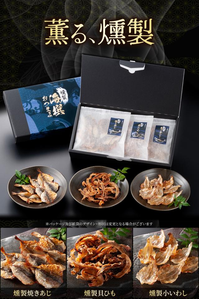 燻製 海撰 おつまみ おつまみセット ギフト 3種 詰め合わせ 2026年 お歳暮 内祝い プレゼント 常温 高級 珍味 海鮮 あじ ホタテ 貝ひも いわし 小分け 冬ギフト