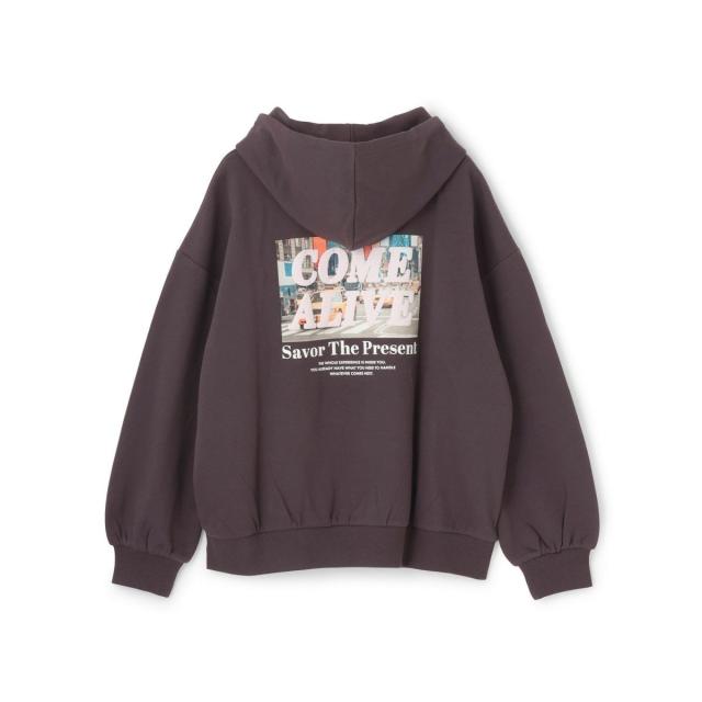 バックの大胆なフォトプリントが目を引くパーカです。