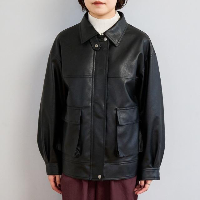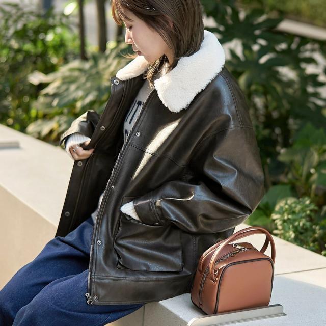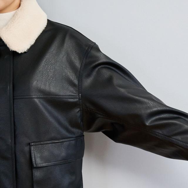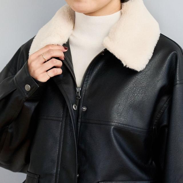 ヴィンテージ感漂うフェイクレザーに、ボア襟をあしらったブルゾン。