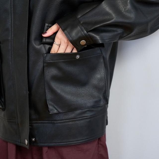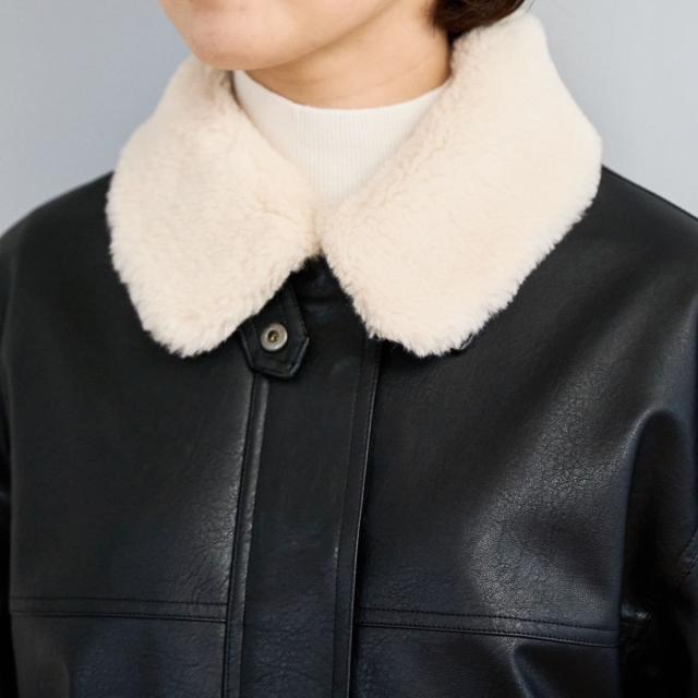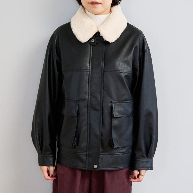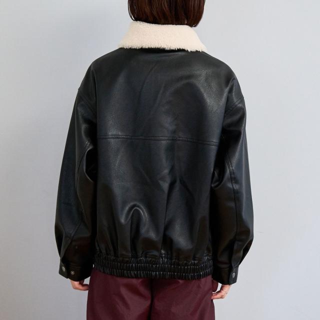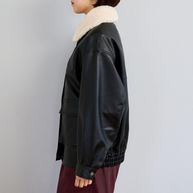 ボア襟付きレザーライクヴィンテージブルゾン