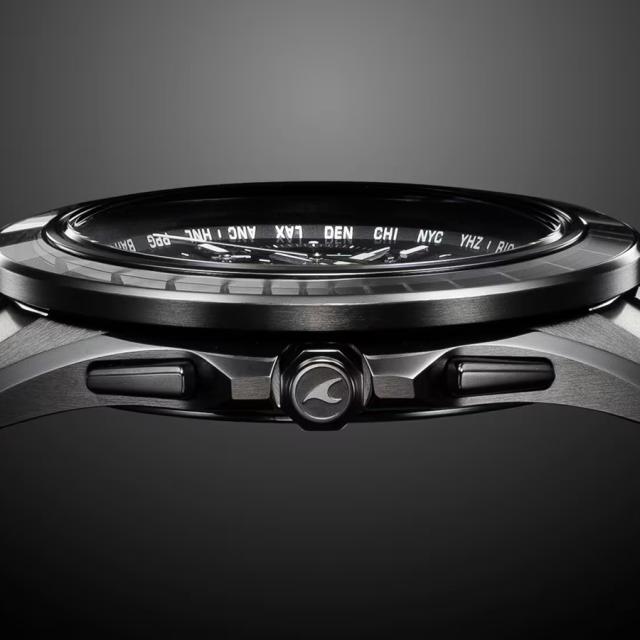 月の光に照らされた夜の海を、オールブラックのチタン外装と江戸切子のサファイアガラスベゼルで表現しました。