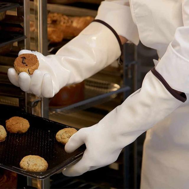焼き菓子などの火の通りも、熱々の状態でグローブをつけたまま直接確認可能です。目で見て、手で触れて仕上がりを確かめられるので、火傷の心配なく安心して調理できます。