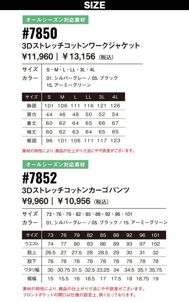 アイズフロンティア 2025年 秋冬 新商品 上下セット 7850-7852 3Dストレッチコットンワークジャケット カーゴパンツ ストレッチ 洗い加工 動きやすい おしゃれ かっこいい スタイリッシュ 現場 倉庫 ユニフォーム オールシーズン 通年 作業着 作業服 I’ZFRONTIER