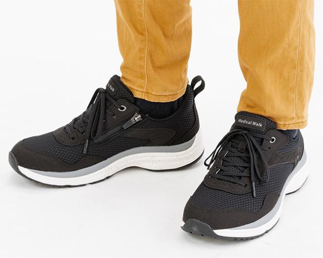 アサヒ メディカルウォーク WK M032 メンズ スニーカー 滑らない 歩きやすい 疲れない 履きやすい 防滑 スクリュー 軽量 ローカット サイドジップ 4E 幅広 おしゃれ かっこいい 男性用 通勤 通学 運動靴 ウォーキングシューズ 靴