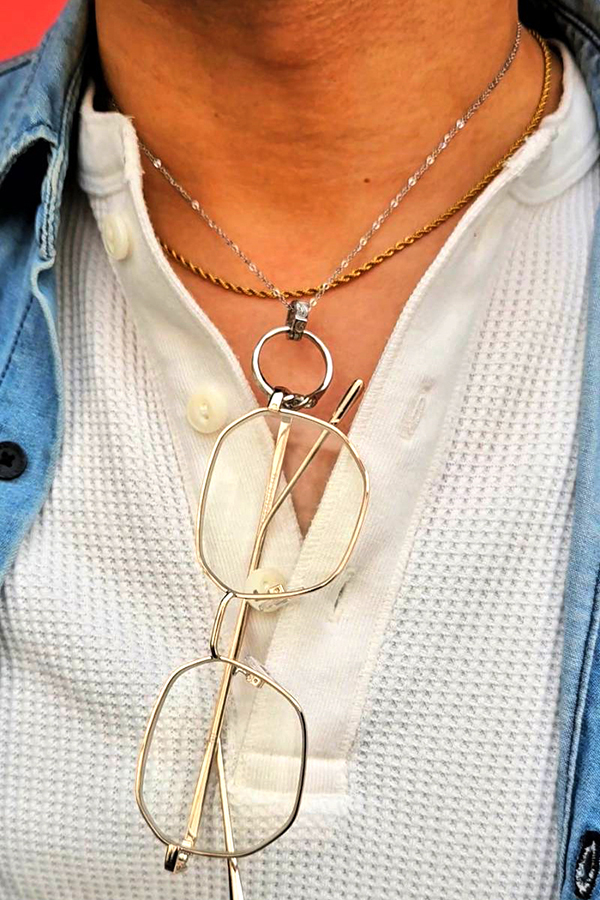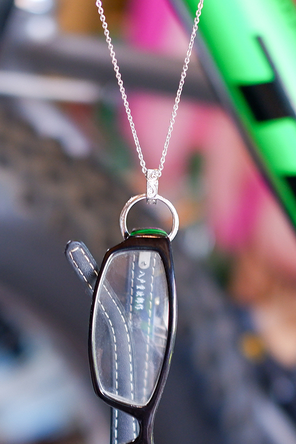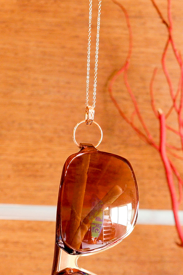 指輪部分にメガネやサングラスを 引っ掛けてグラスホルダーとしてもお使いいただけます。