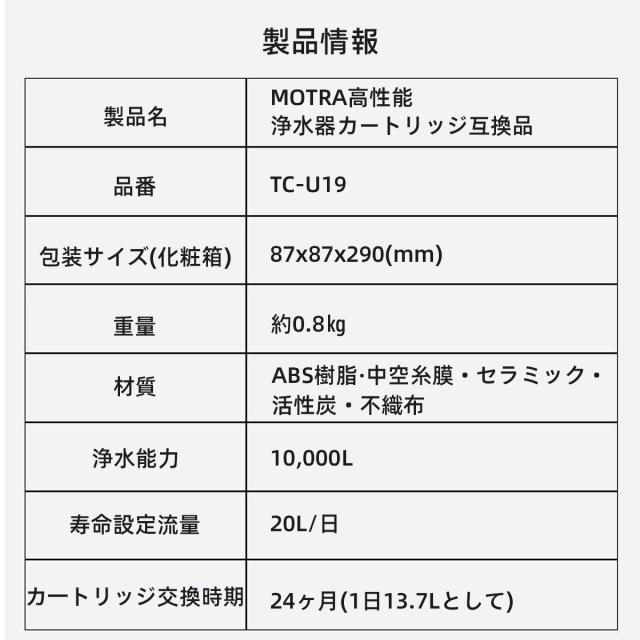 TJS-TC-U19 浄水カートリッジ TJS-TC-U19の交換品 TC-U19 取替用カートリッジ タイプ 交換用カートリッジ アルカリ整水器用取換用カートリッジ 浄水器機能付 17+2物質除去 UHC3000の交換品 TJS-TC-U15/UZC2000T後継品