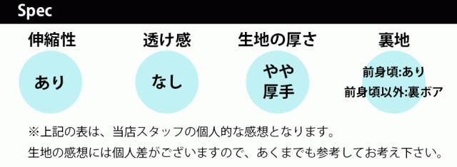 後身頃 袖・リブ:ポリエステル95% ポリウレタン5%