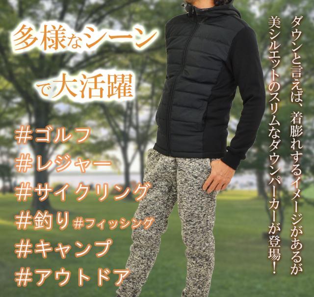 ダウンパーカー メンズ ダウンジャケット ゴルフジャケット ダウン入り ジャージ 裏シャギー ライトアウター 暖かい 防寒 保温 ジップアップパーカー ストレッチ ジャージ 生地 スリム タイト スタイリッシュ 防寒 防風 無地 迷彩柄 ゴルフウェア ブルゾン 新作 送料無料