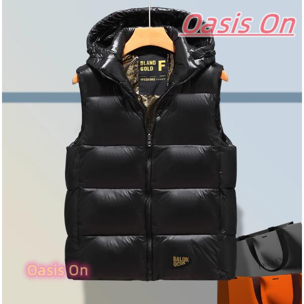 中綿ベスト ダウンベスト メンズ フード脱着可 光沢 中綿入り ワンポイント 暖かい 防寒ベスト おしゃれ 秋 秋服 冬 冬服 20代 30代 40代 ブランド