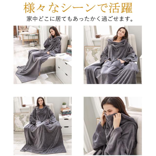 即納 着る毛布 かいまき毛布 ルームウェア ふわとろ毛布 袖付き毛布 あったグッズ パジャマ 暖かい 洗える 部屋着 ポンチョ ブランケット 男女兼用