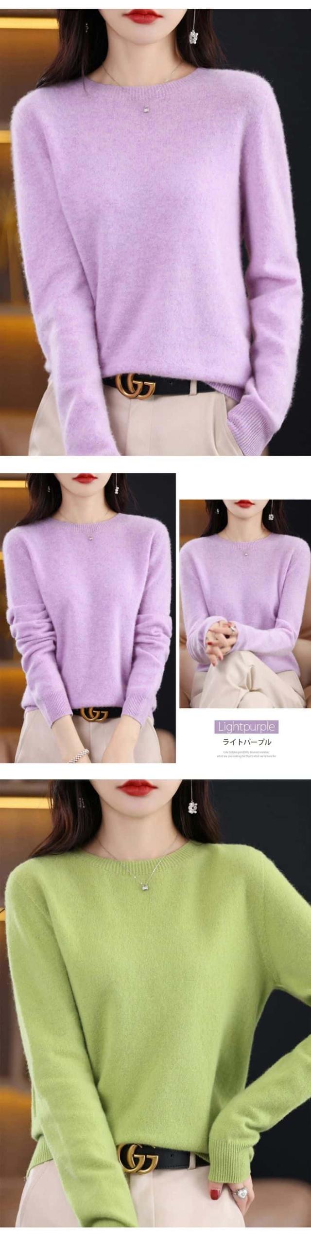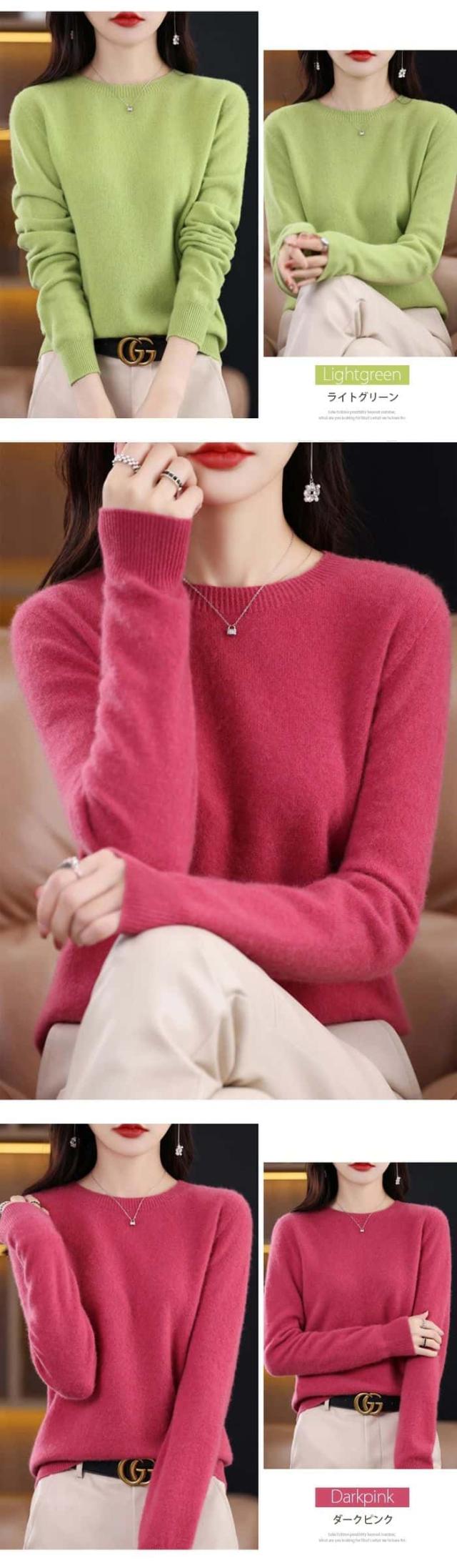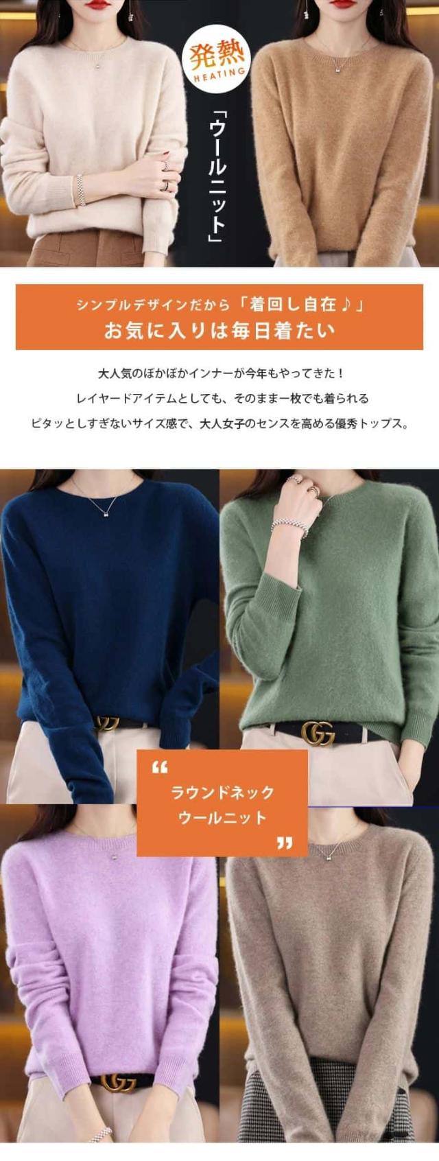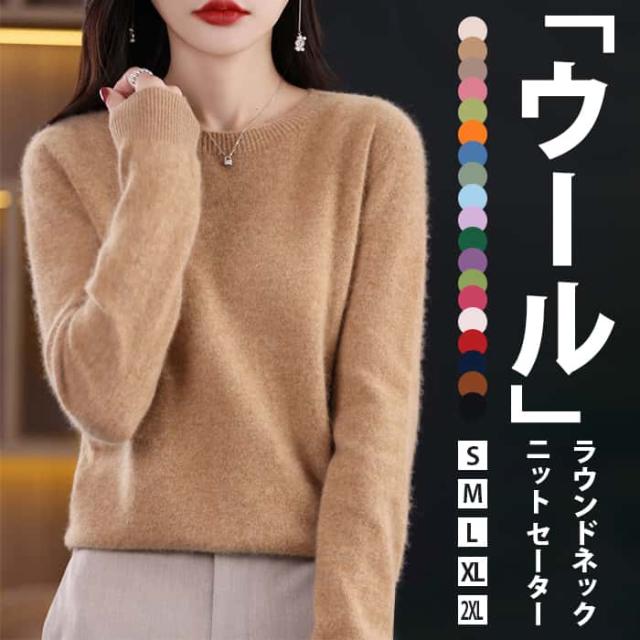 「着る瞬間から感じる」ウール ニット セーター ウール100% レディース 長袖 ニットセーター ラウンドネック ブラウス ショート丈 トップス 大きいサイズ インナー 体型カバー カットソー 発熱 薄手 羽織り 敏感肌 上品 重ね着 高品質 肌着 柔らか 普段着 大人 シンプル 秋