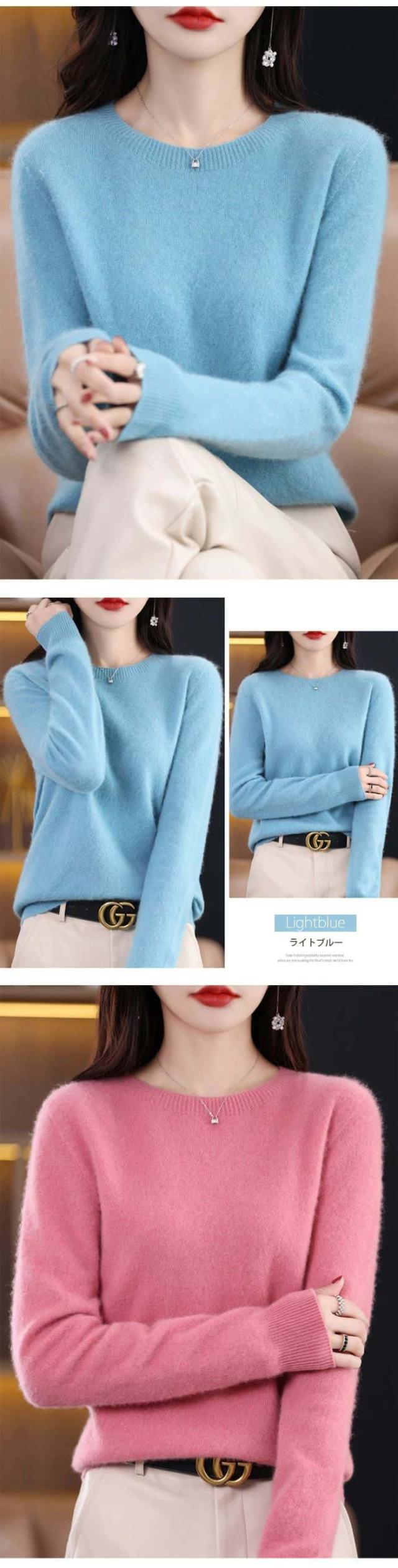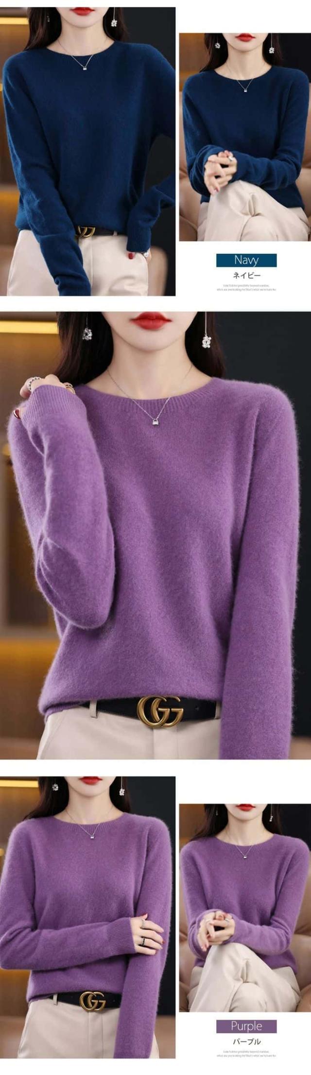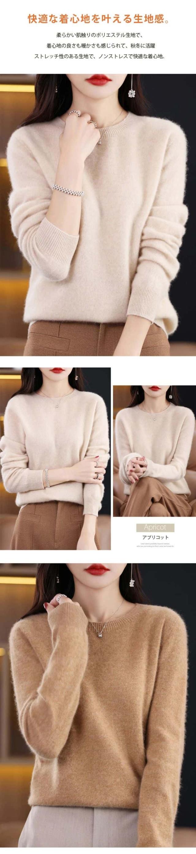 「着る瞬間から感じる」ウール ニット セーター ウール100% レディース 長袖 ニットセーター ラウンドネック ブラウス ショート丈 トップス 大きいサイズ インナー 体型カバー カットソー 発熱 薄手 羽織り 敏感肌 上品 重ね着 高品質 肌着 柔らか 普段着 大人 シンプル 秋