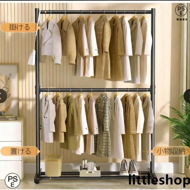 ハンガーラック 幅60-120cm 2段 衣類収納 高耐荷重 大容量 耐荷重80-120kg コンパクト コート掛け 洋服 頑丈 シンプル ナチュラル 多機能 一人暮らし 引っ越し