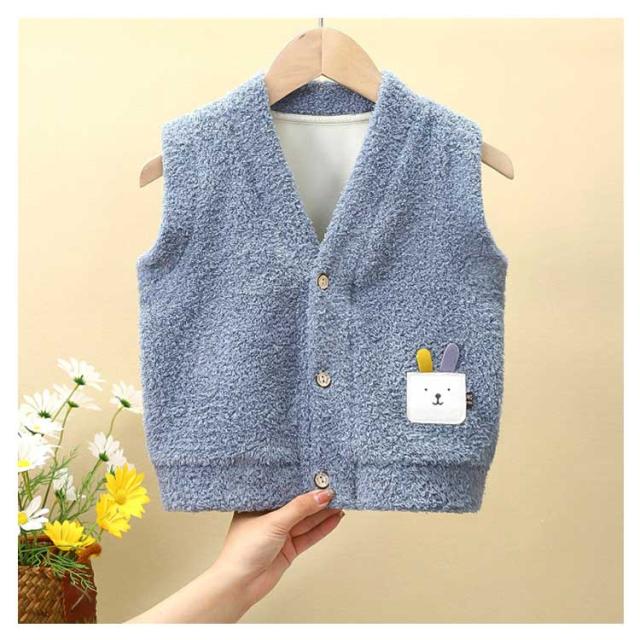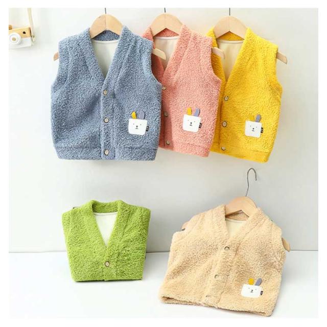 裏起毛 秋冬 アウター 子ども服 シンプル 保温 vネック 防寒 ベスト 前開き トップス キッズ 男の子 ボア ジャケット 着脱しやすい ベスト 可愛い ボタン付き 暖かい カジュアル おしゃれ 履き心地よい ユニセックス 厚手 女の子 通園