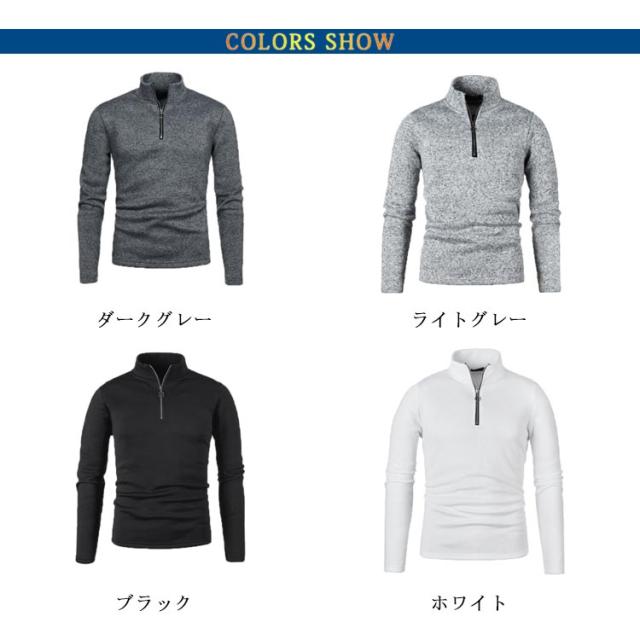 ハーフジップ トレーナー メンズ ハイネック スウェット ジップアップ セーター 長袖 ジッパー インナー ゴルフウェア スタンドカラー 立ち襟 トップス 冬 暖かい カジュアル ルームウエア 無地 おしゃれ 秋服 冬服 春 秋 冬
