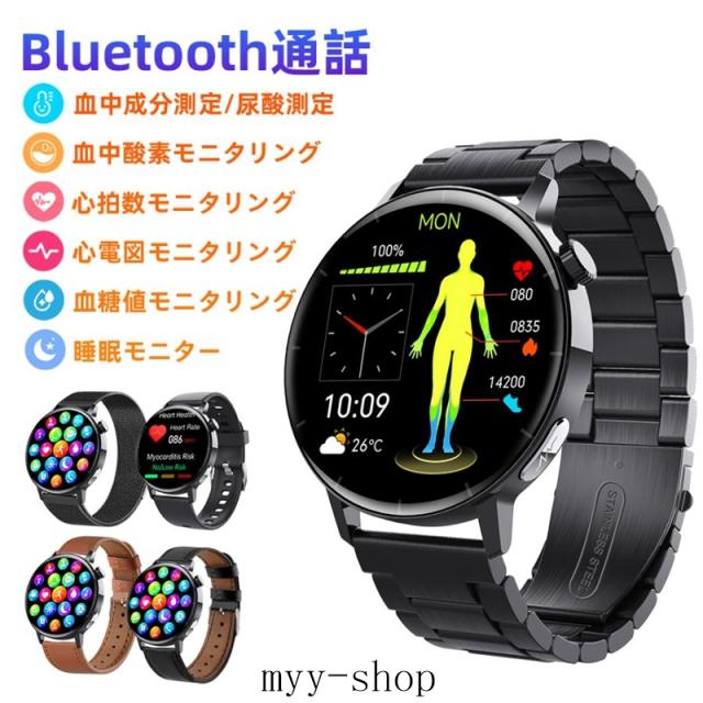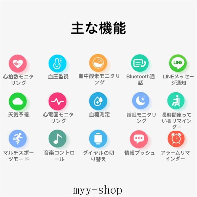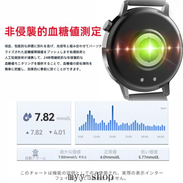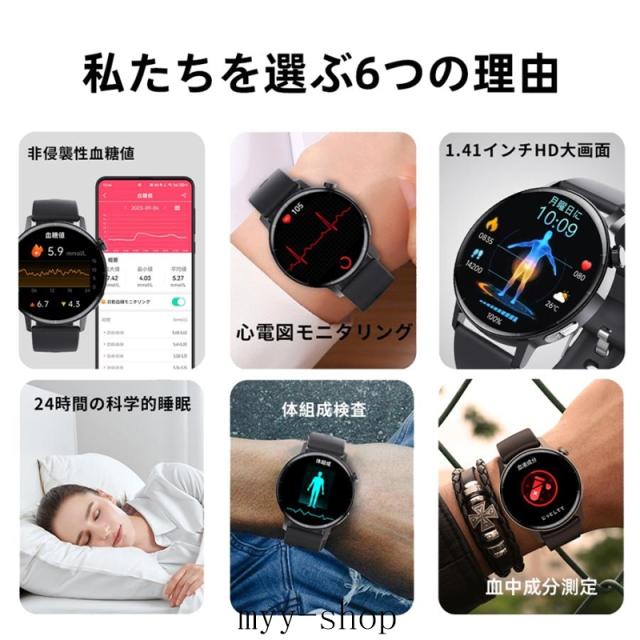 スマートウォッチ 血糖値 血圧 ECG心電図測定 日本製センサー 【1.41インチ&通話機能付き&磁気吸引充電】Smart watch iPhone対応 アンドロイド対応 多機能 歩数計 活動量計 目覚まし時計 天気予報 音楽・カメラ制御 多種認証済み 敬老の日 プレゼント