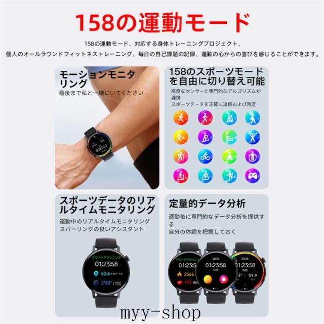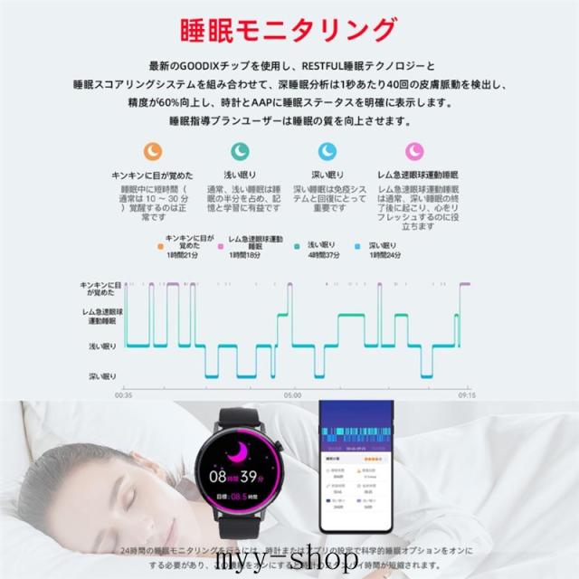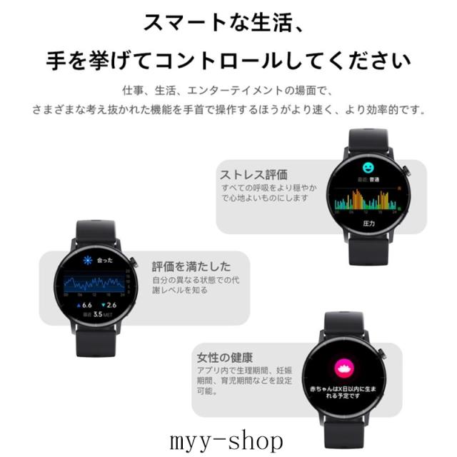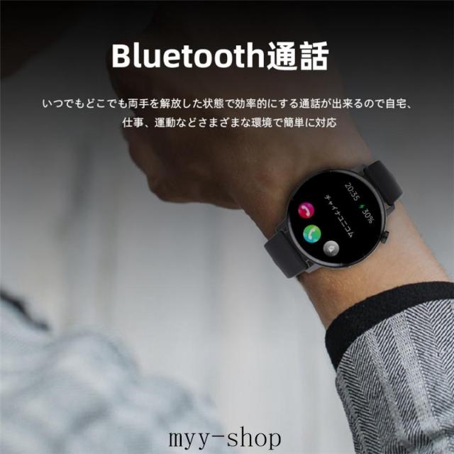 【Bluetooth通話機能&音声アシスタント】スマートフォンとBluetooth接続すれば、電話の受信と応答を行うことができます。大切な電話を逃すことはありません。※※専用アプリと接続するとス マートウォッチで直接に電話をかけることや着信拒否も実現可能。運転中でも運動中でも両手を解放し、より効率的な通話ができます。音声アシスタント機能を搭載しており、スマートウォッチに話しかけるだけで音楽をかけてくれたり、アラームを設定してくれたり、スポーツモードを開始したりするなどの操作を実行できます。