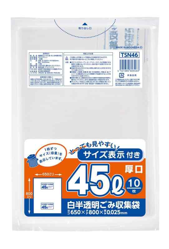 ジャパックス ポリ袋 白半透明 45L 縦80cm×横65cm×厚み0.025mm ゴミ袋 サイズ表示 入り 厚口タイプ 破れにくい TSN-46 10枚入
