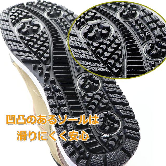 4cm4時間の防水設計と防滑ソールで雨の日でも安心。