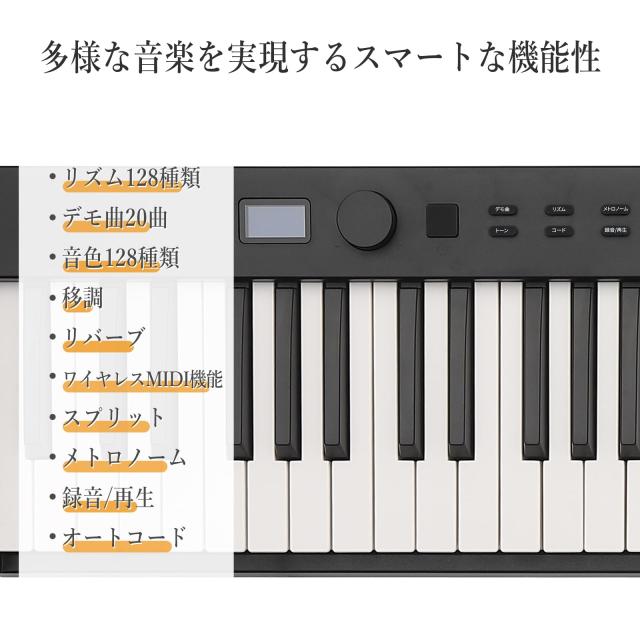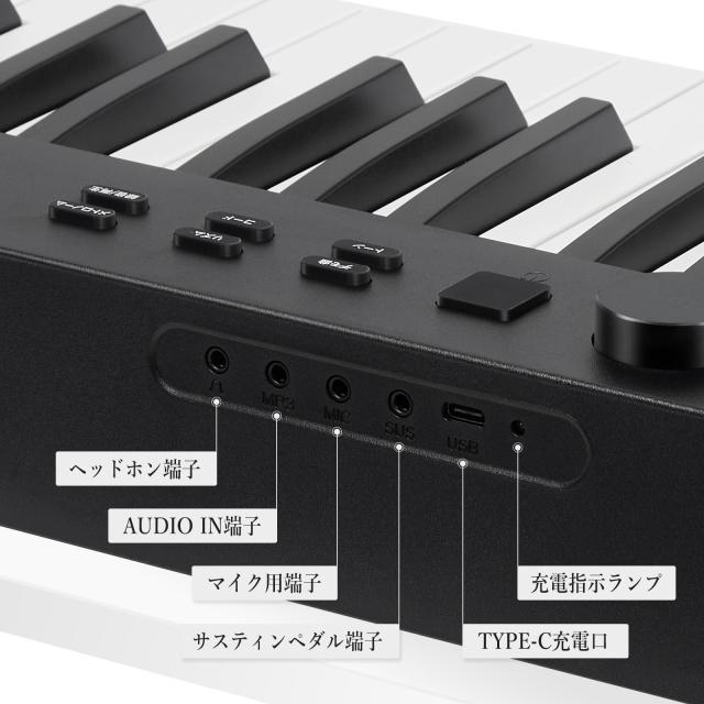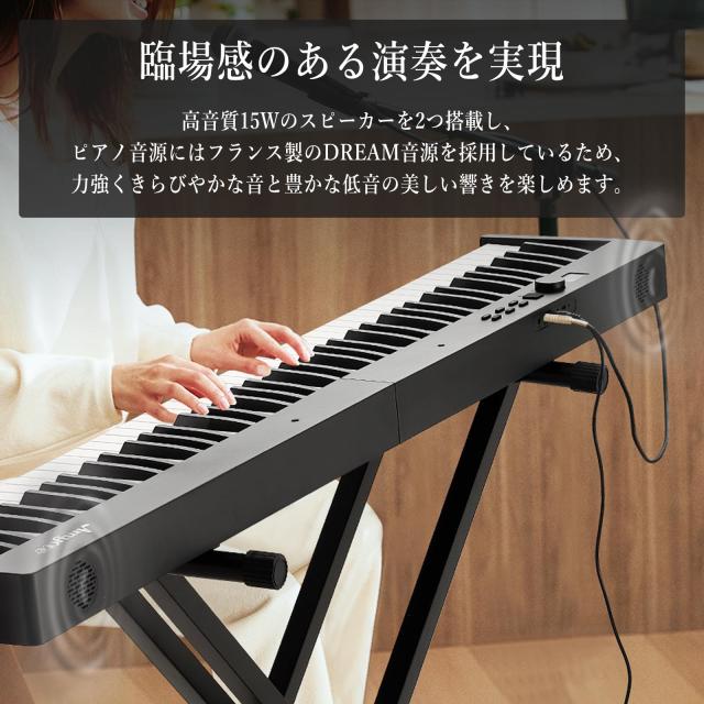 電子ピアノ 88鍵盤 折り畳み コンパクト 軽量 MIDI対応 生ピアノと同じ鍵盤サイズ キーボード 128種音色 充電型 ペダル/練習用イヤホン/専用ケース付き スタンドセット