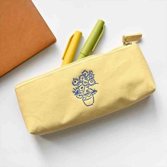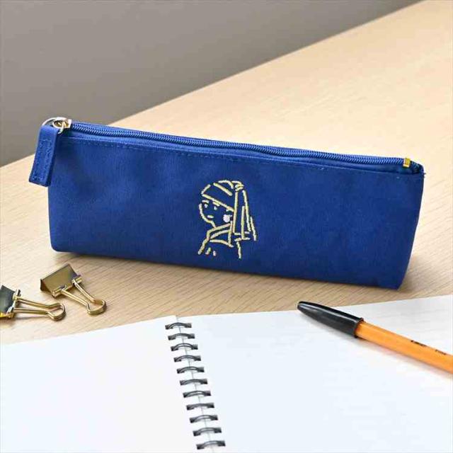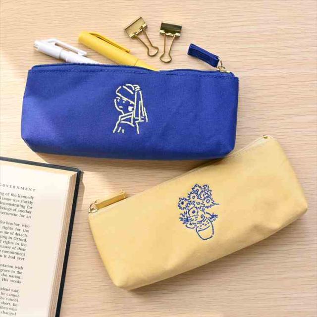帆布の生地のシンプルで使いやすい形のペンケース。誰もが知っている有名な美術作品をラフなタッチでアレンジした刺繍がポイント!マチがあるのでたくさん入れられます。内側は汚れに強いラミネートコーティング加工です。