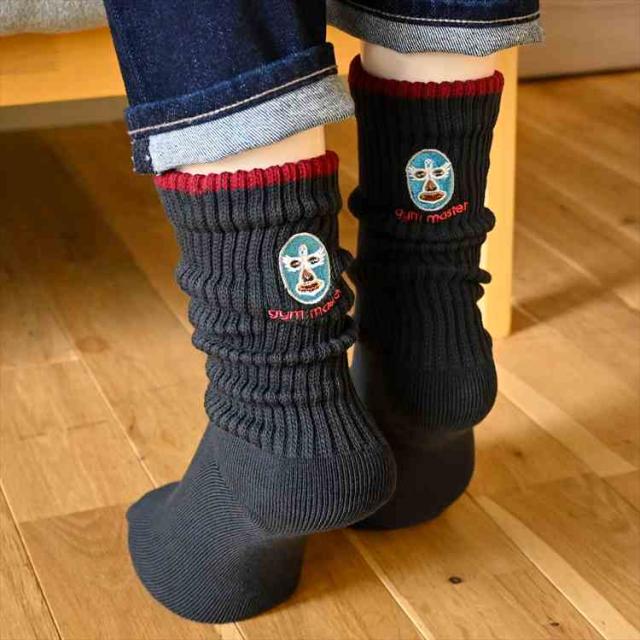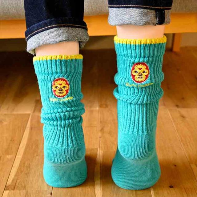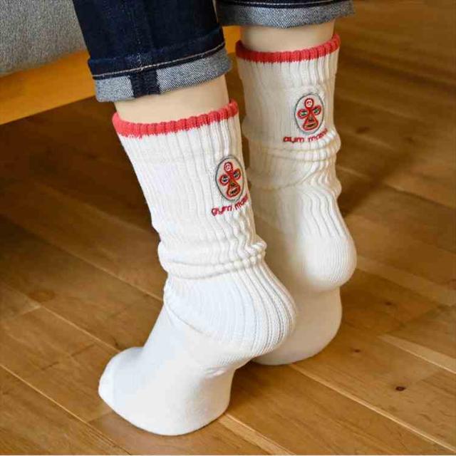 おちゃめなレスラー刺繍がワンポイント!くしゅっと履くのがかわいい柔らかリブ素材のルーズソックス。
