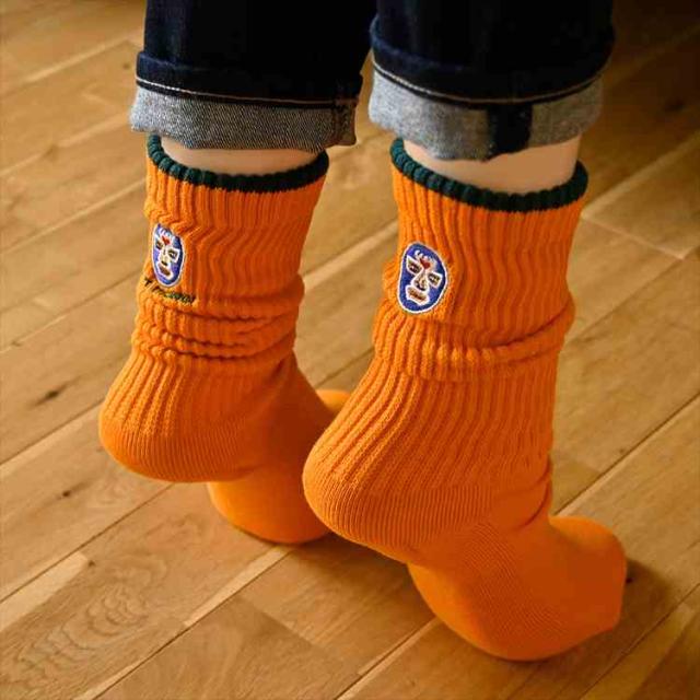 おちゃめなレスラー刺繍がワンポイント!くしゅっと履くのがかわいい柔らかリブ素材のルーズソックス。抗菌防臭がされており、足裏は柔らかく通気性の良いパイル生地でどんな季節でも履き心地◎