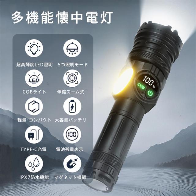 【爆売れ!】懐中電灯 LEDライト ハンディライト 充電式 タクティカルライト ledライト 電池残量 高輝度 防災用 コンパクト キャンプ 照明 ズーム機能付き