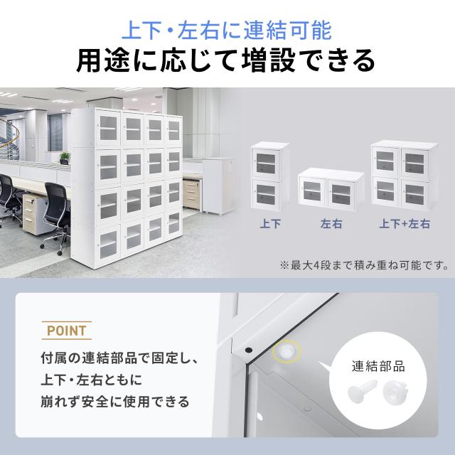 ●連結パーツを使用して、ボックスを縦連結、横連結、縦横連結が可能で、収納箇所を増やすことができます。(上下は5段まで)