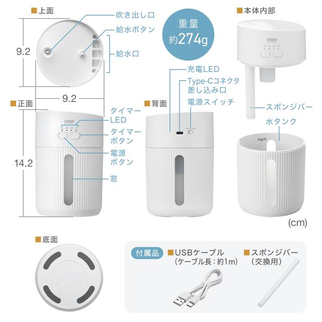 ■本体サイズ:W9.4×D9.4×H14.4cm■重量:約271g(USBケーブルを除く)