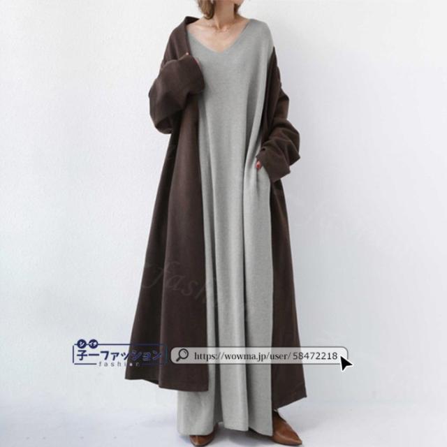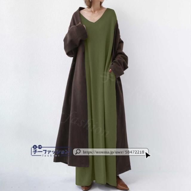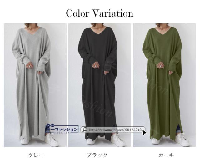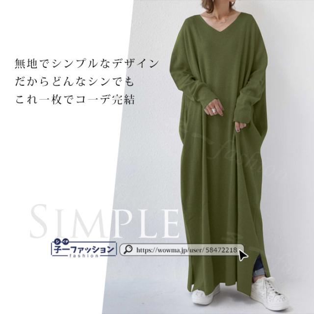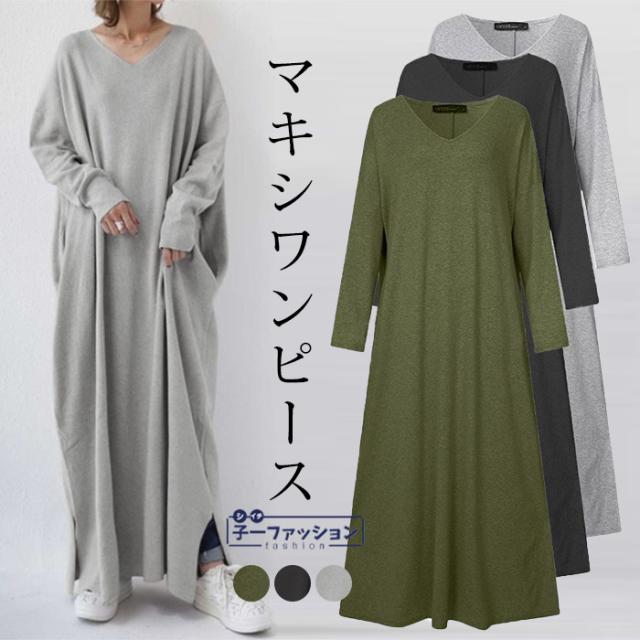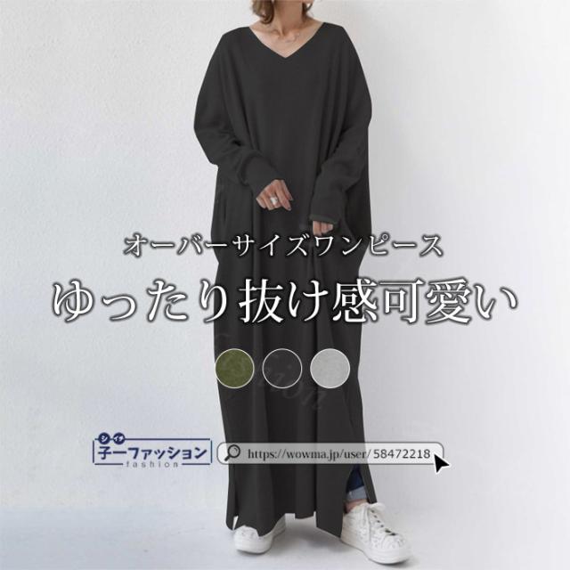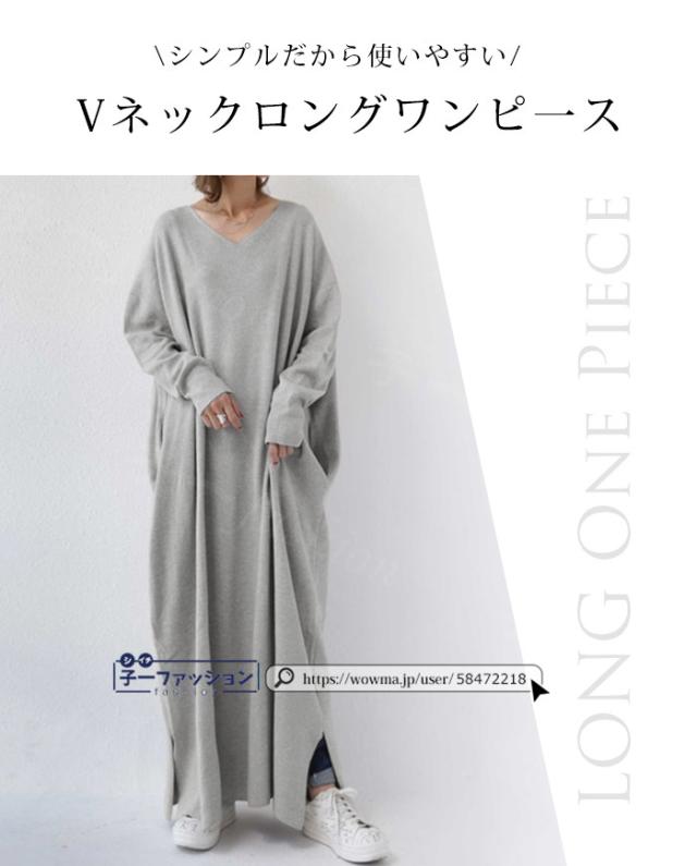 <1点3,050円!クーポン利用で>ワンピース マキシワンピース 薄手 大きいサイズ ゆったり Vネック 長袖 レディース きれいめ オフィス カジュアル ロング丈 マキシ丈 体型カバー 通勤 OL 着痩せ 20代 30代 40代 50代 春秋 カットソー オーバーサイズ バレンタイン