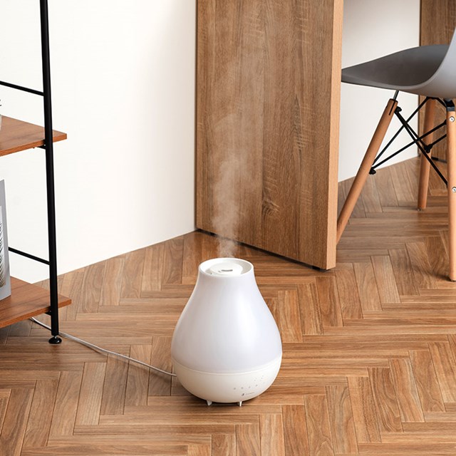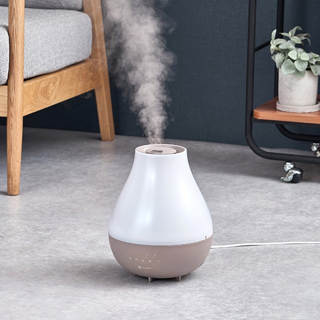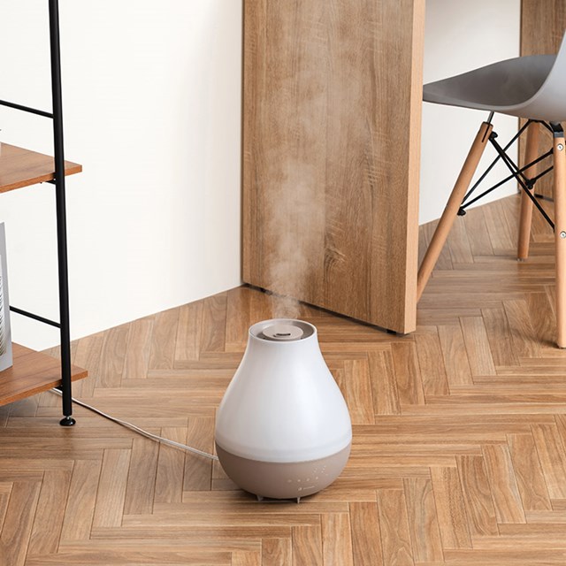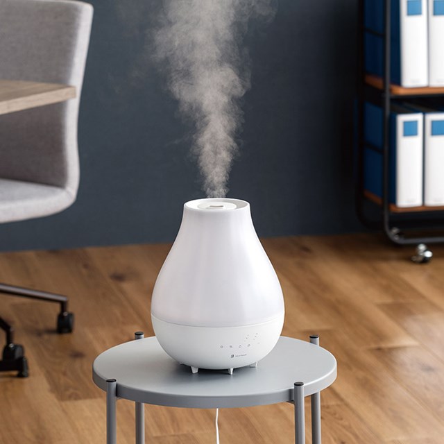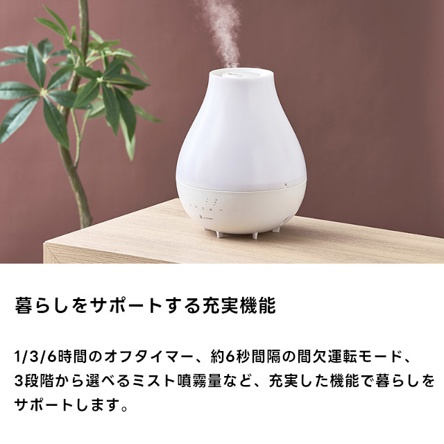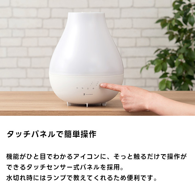 雫のようなフォルムがかわいいハイブリッド式加湿器
