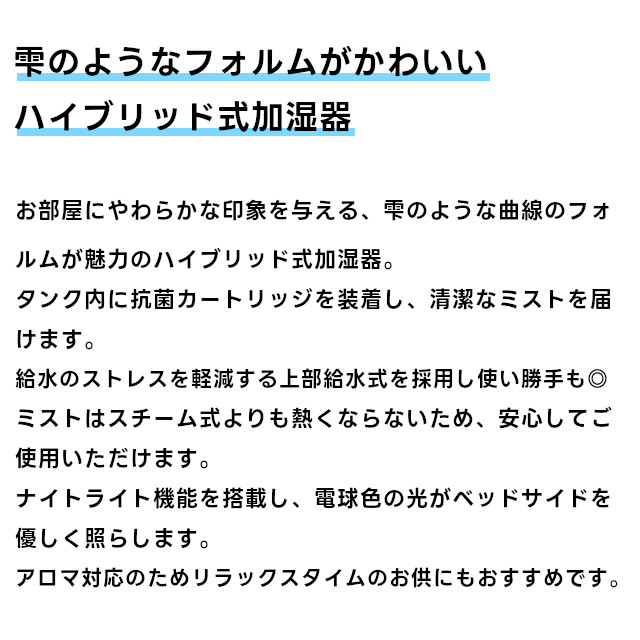 雫のようなフォルムがかわいいハイブリッド式加湿器 |