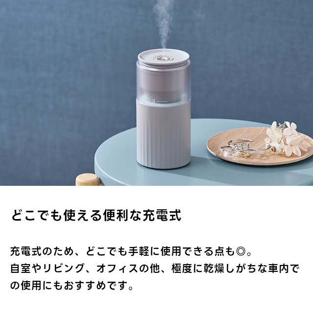 【Life on Products】充電式ムードライト加湿器 LCAHF015【ライフオンプロダクツ 加湿器 卓上 USB 小型 LEDライト 調光 超音波式 間欠 乾燥対策 250ml オートオフ機能 パーソナル オフィス コードレス 花粉症対策 乾燥対策 ギフト 母の日 父の日 敬老の日 クリスマス Xmas】